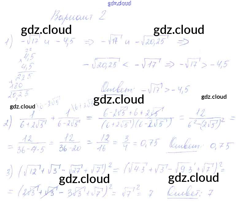 СР-11. Варианты Ответы к Самостоятельным работам по Алгебре 8 класс Контрольные и самостоятельные работы Попов УМК Экзамен