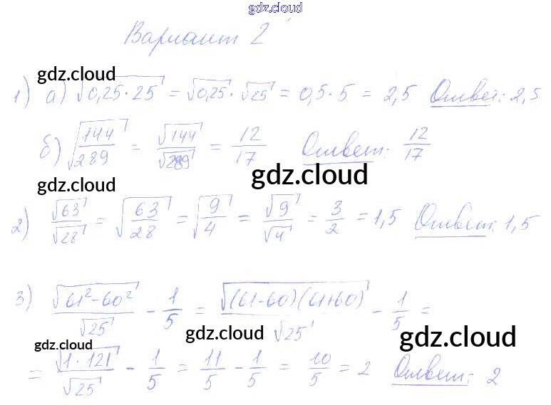 Ответ на задание 2 Контрольные и самостоятельные работы Алгебра за 8 (восьмой) класс Попов УМК 2016