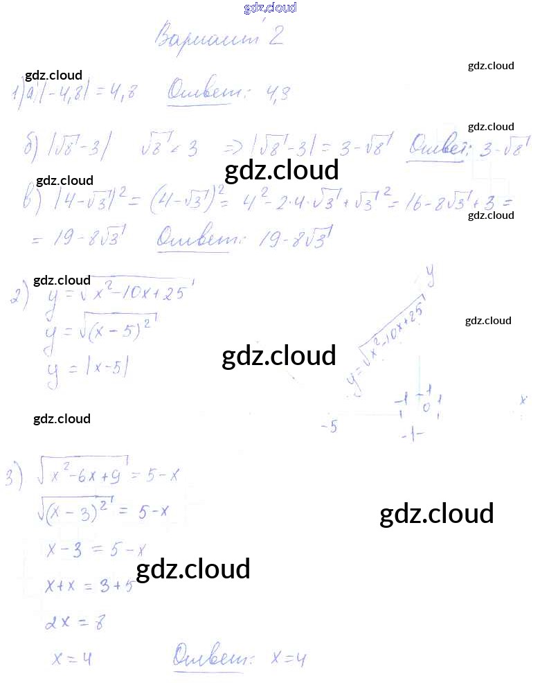 Ответ на задание 2 Контрольные и самостоятельные работы Алгебра за 8 (восьмой) класс Попов УМК 2016