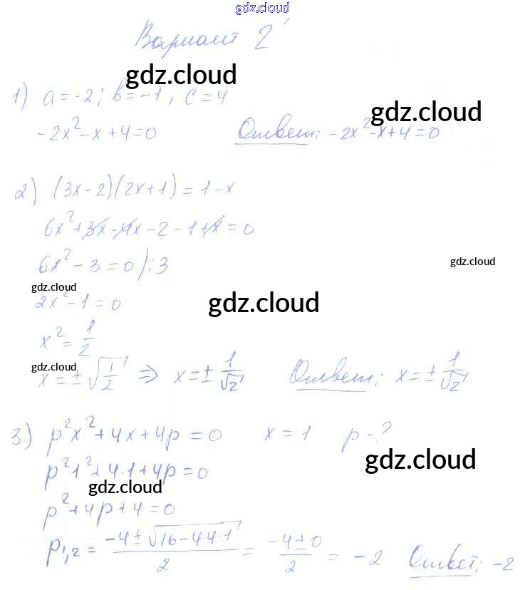 Ответ на задание 2 Контрольные и самостоятельные работы Алгебра за 8 (восьмой) класс Попов УМК 2016