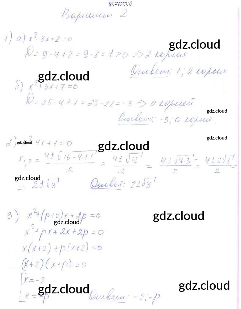 СР-24. Варианты Ответы к Самостоятельным работам по Алгебре 8 класс Контрольные и самостоятельные работы Попов УМК Экзамен