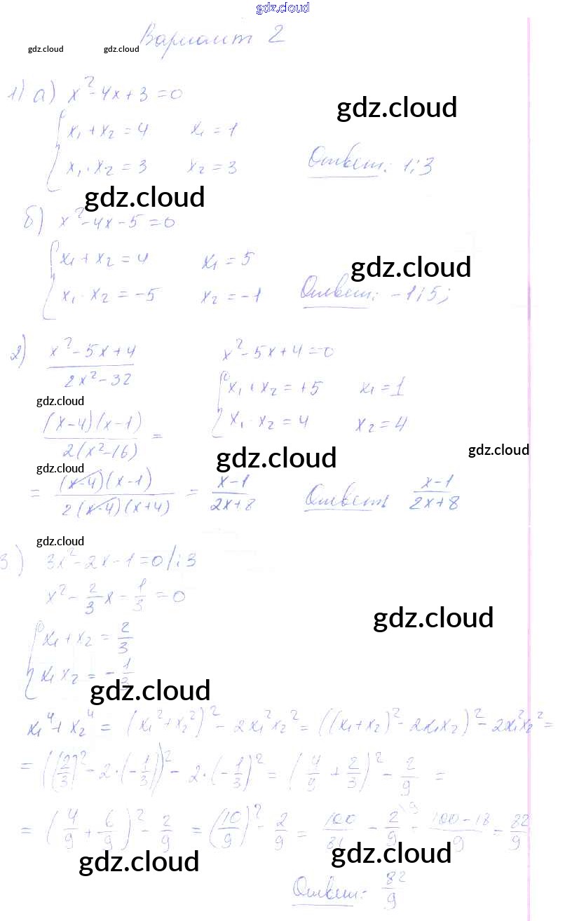 СР-27. Варианты Ответы к Самостоятельным работам по Алгебре 8 класс Контрольные и самостоятельные работы Попов УМК Экзамен