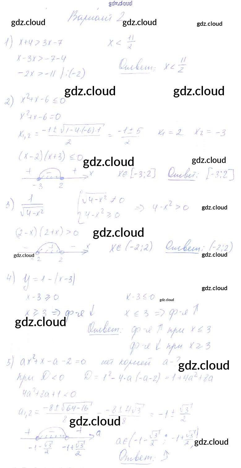 КР-5. Варианты Ответы к Контрольным работам по Алгебре 8 класс Контрольные и самостоятельные работы Попов УМК Экзамен