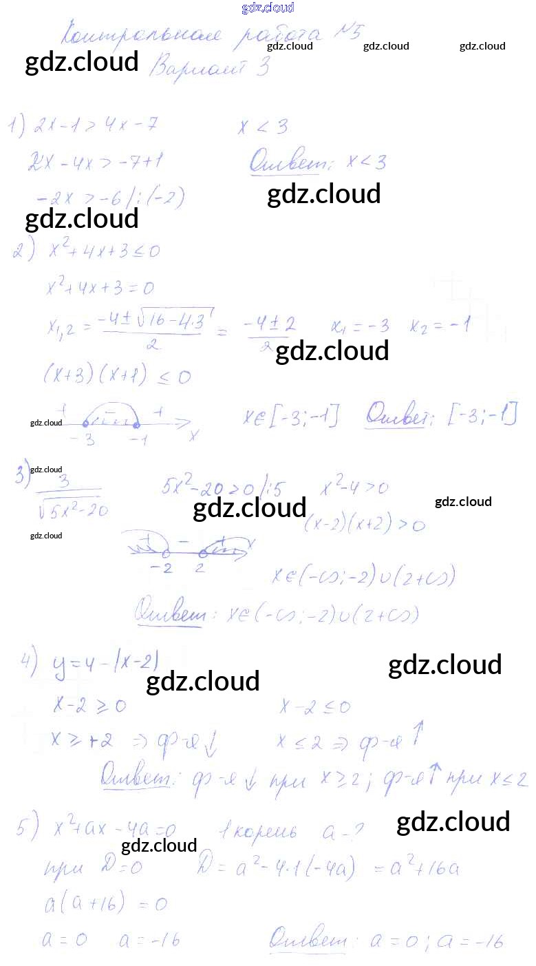КР-5. Варианты Ответы к Контрольным работам по Алгебре 8 класс Контрольные и самостоятельные работы Попов УМК Экзамен