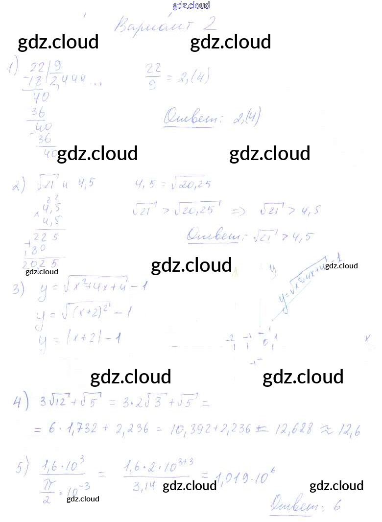 Ответ на задание 2 Контрольные и самостоятельные работы Алгебра за 8 (восьмой) класс Попов УМК 2016