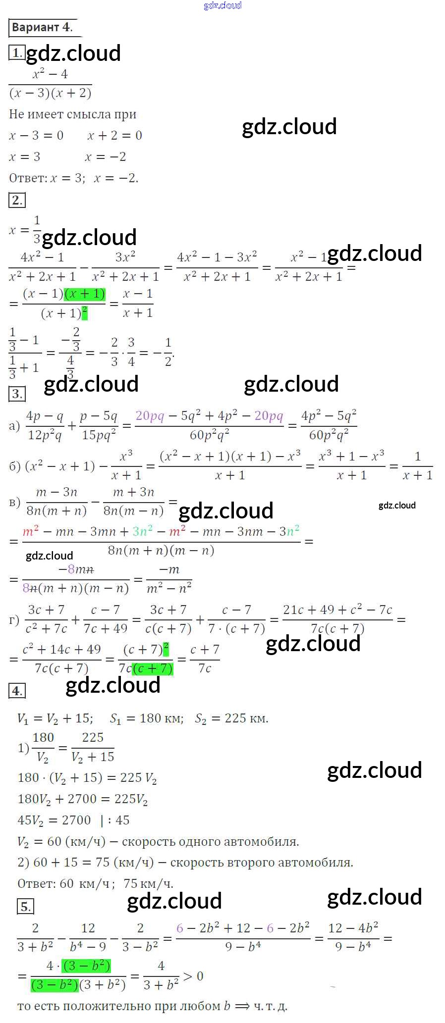 Ответ на задание 4 Контрольные работы Алгебра за 8 (восьмой) класс Александрова УМК Базовый уровень 2016