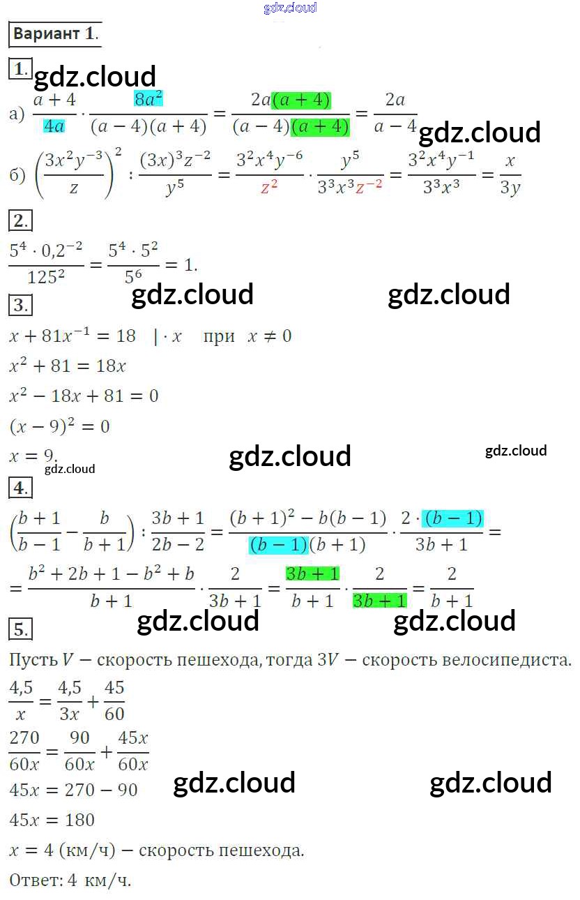 Ответ на задание 1 Контрольные работы Алгебра за 8 (восьмой) класс Александрова УМК Базовый уровень 2016