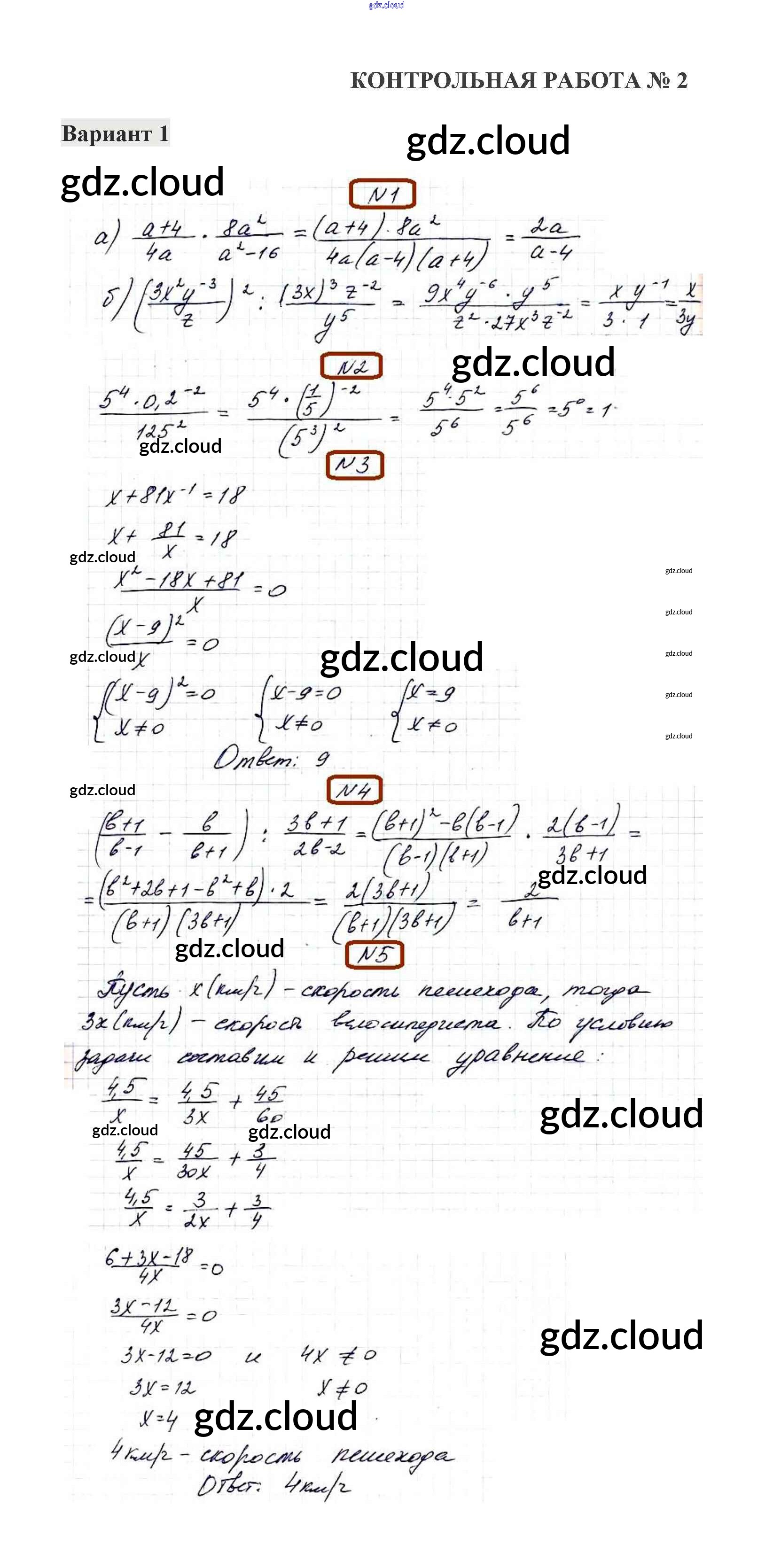 КР-2. Варианты Ответы к Контрольным работам по Алгебре 8 класс Контрольные работы Александрова УМК Базовый уровень Мнемозина