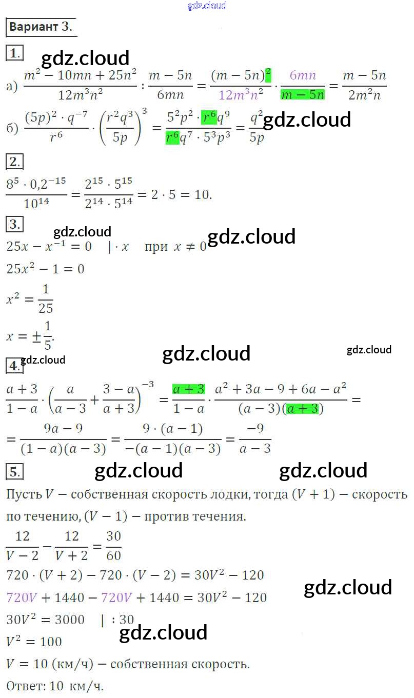 Ответ на задание 3 Контрольные работы Алгебра за 8 (восьмой) класс Александрова УМК Базовый уровень 2016
