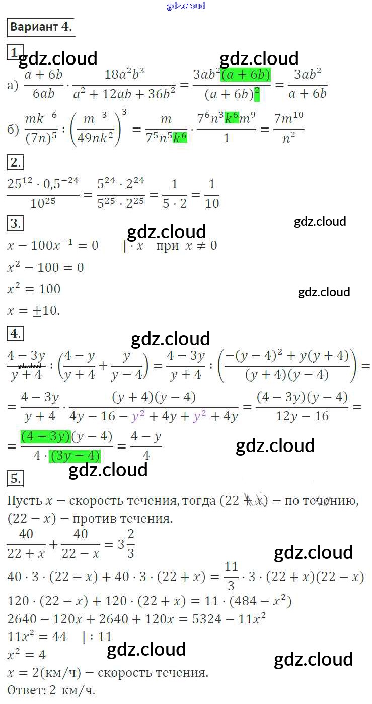 Ответ на задание 4 Контрольные работы Алгебра за 8 (восьмой) класс Александрова УМК Базовый уровень 2016