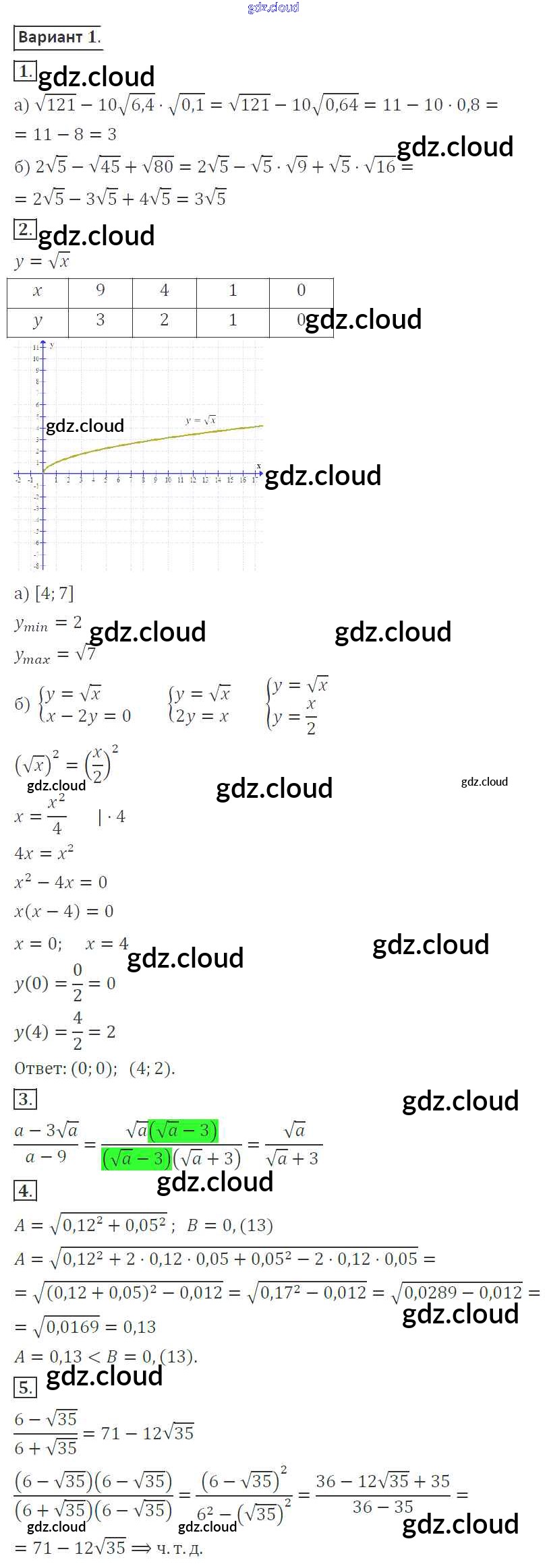 Ответ на задание 1 Контрольные работы Алгебра за 8 (восьмой) класс Александрова УМК Базовый уровень 2016