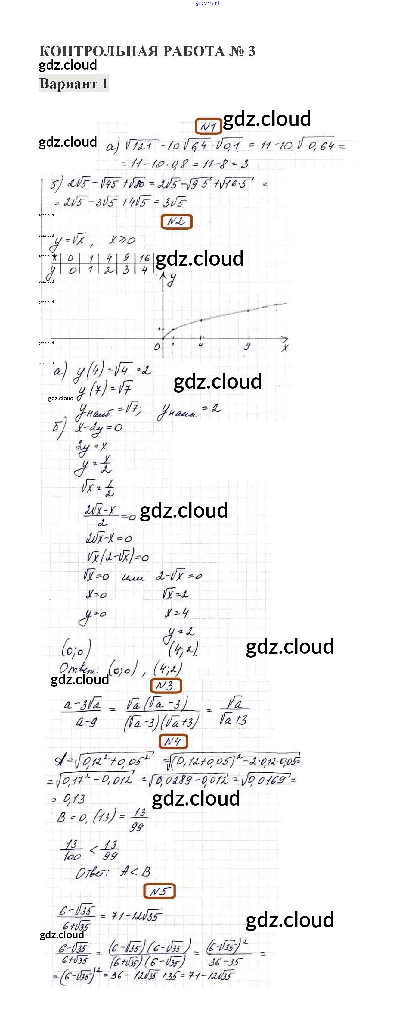 КР-3. Варианты Ответы к Контрольным работам по Алгебре 8 класс Контрольные работы Александрова УМК Базовый уровень Мнемозина