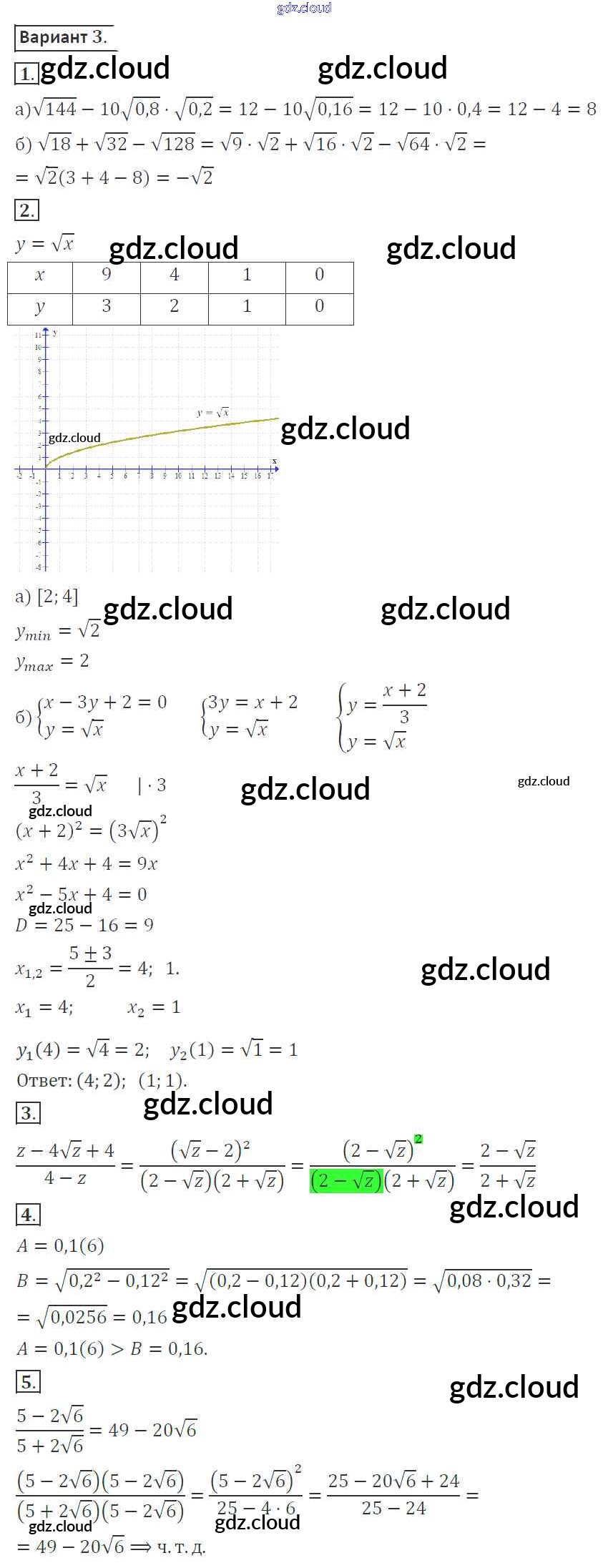 КР-3. Варианты Ответы к Контрольным работам по Алгебре 8 класс Контрольные работы Александрова УМК Базовый уровень Мнемозина