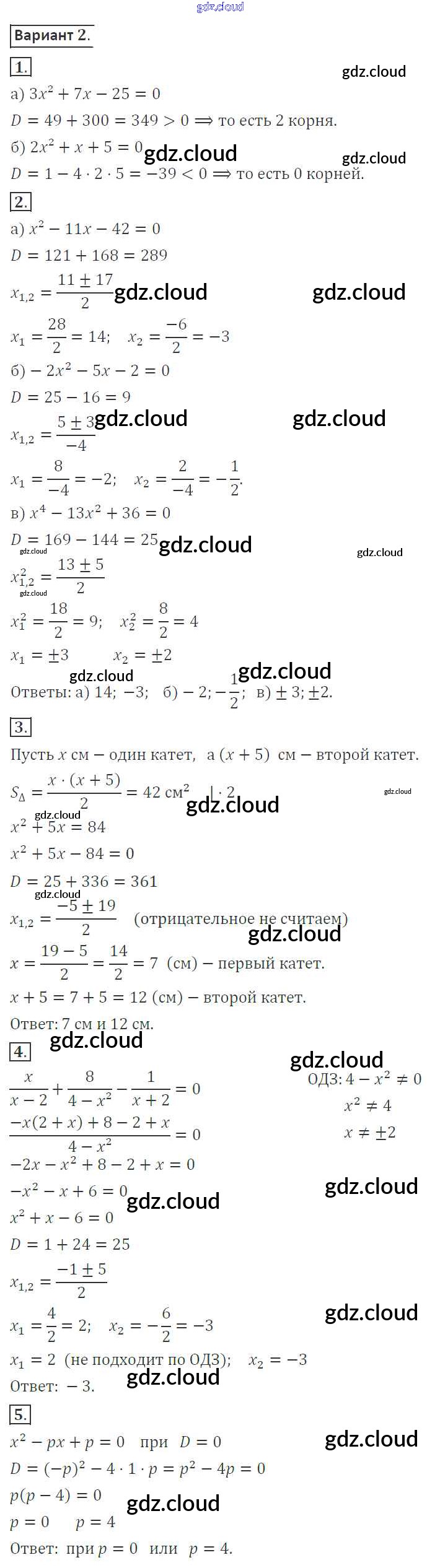 Ответ на задание 2 Контрольные работы Алгебра за 8 (восьмой) класс Александрова УМК Базовый уровень 2016