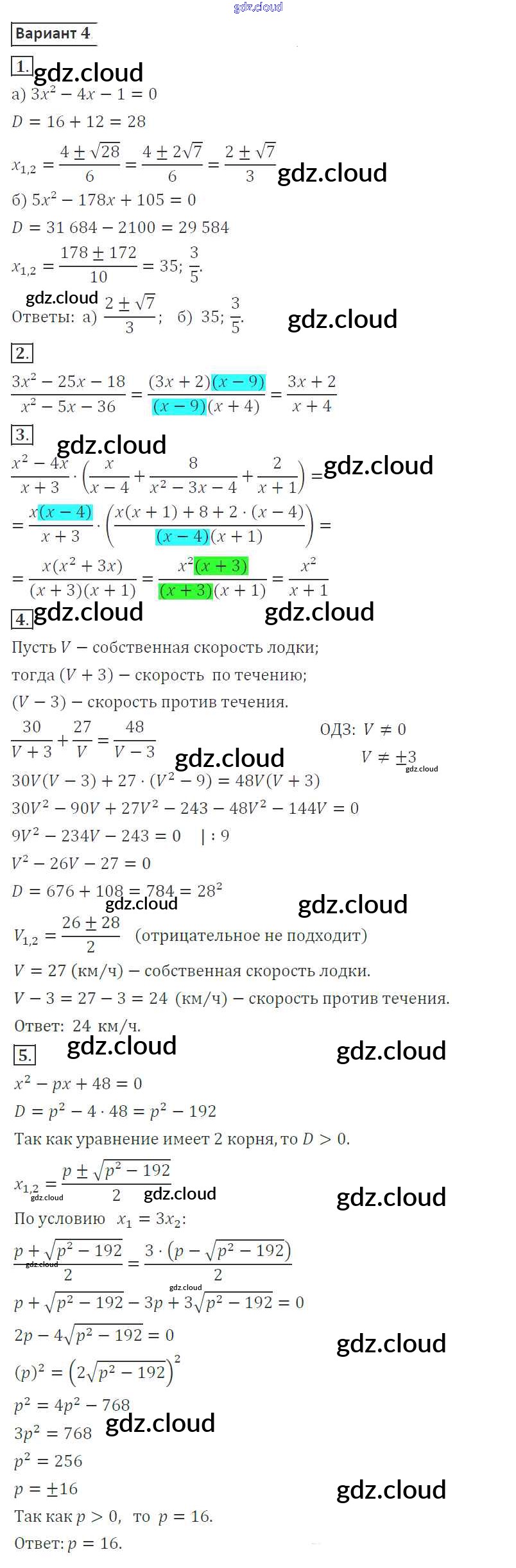Ответ на задание 4 Контрольные работы Алгебра за 8 (восьмой) класс Александрова УМК Базовый уровень 2016