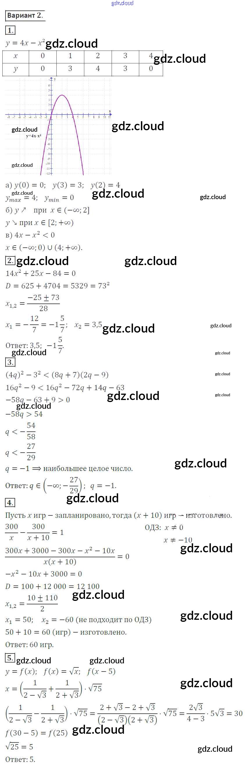 Ответ на задание 2 Контрольные работы Алгебра за 8 (восьмой) класс Александрова УМК Базовый уровень 2016
