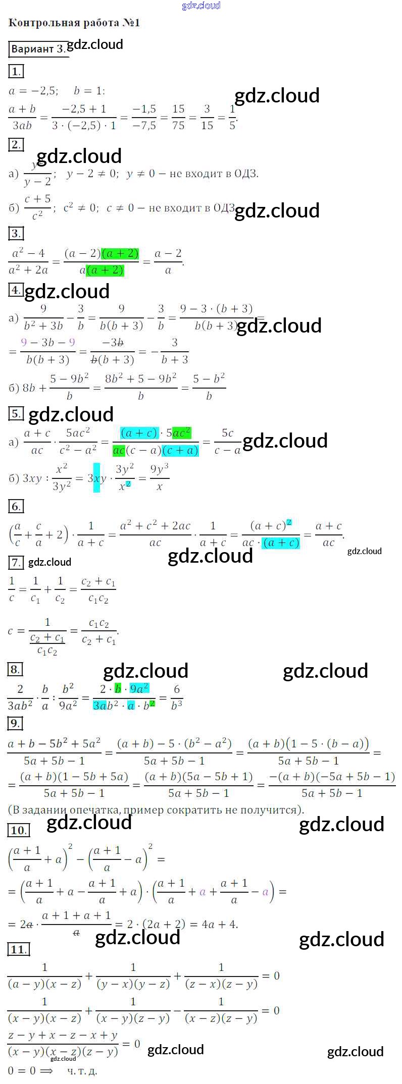 Ответ на задание 3 Контрольные работы Алгебра за 8 (восьмой) класс Кузнецова, Минаева, Рослова, Суворова 2016