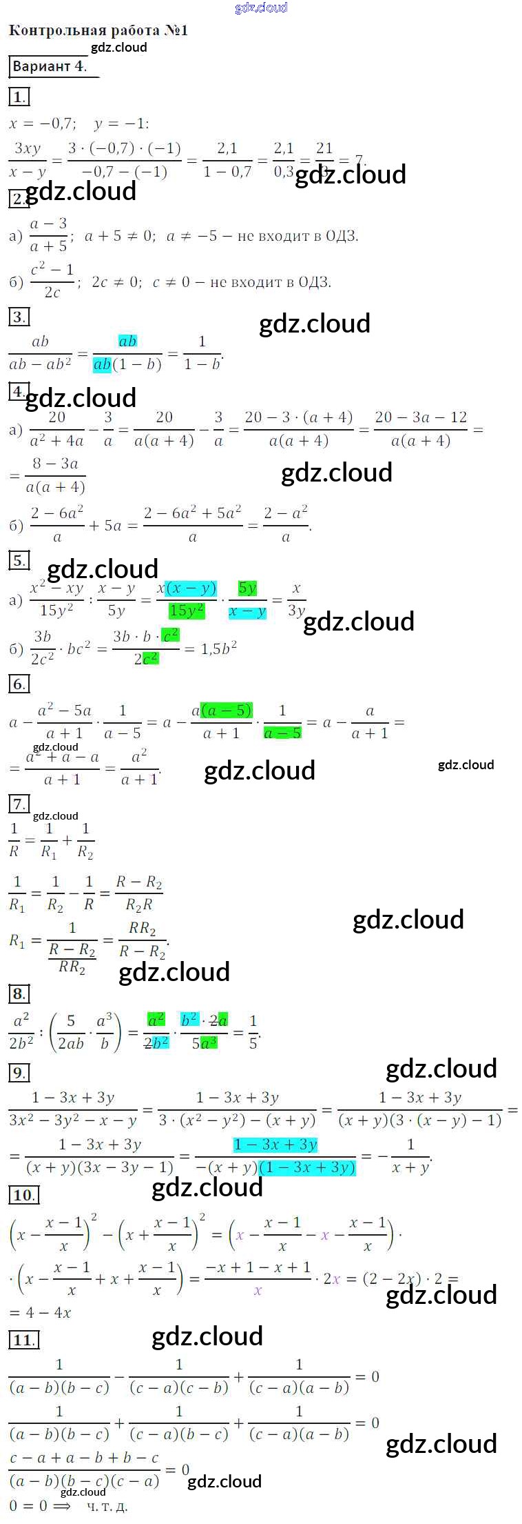 Ответы к Контрольной работе 1. Варианты по Алгебре 8 класс Контрольные работы Кузнецова Просвещение