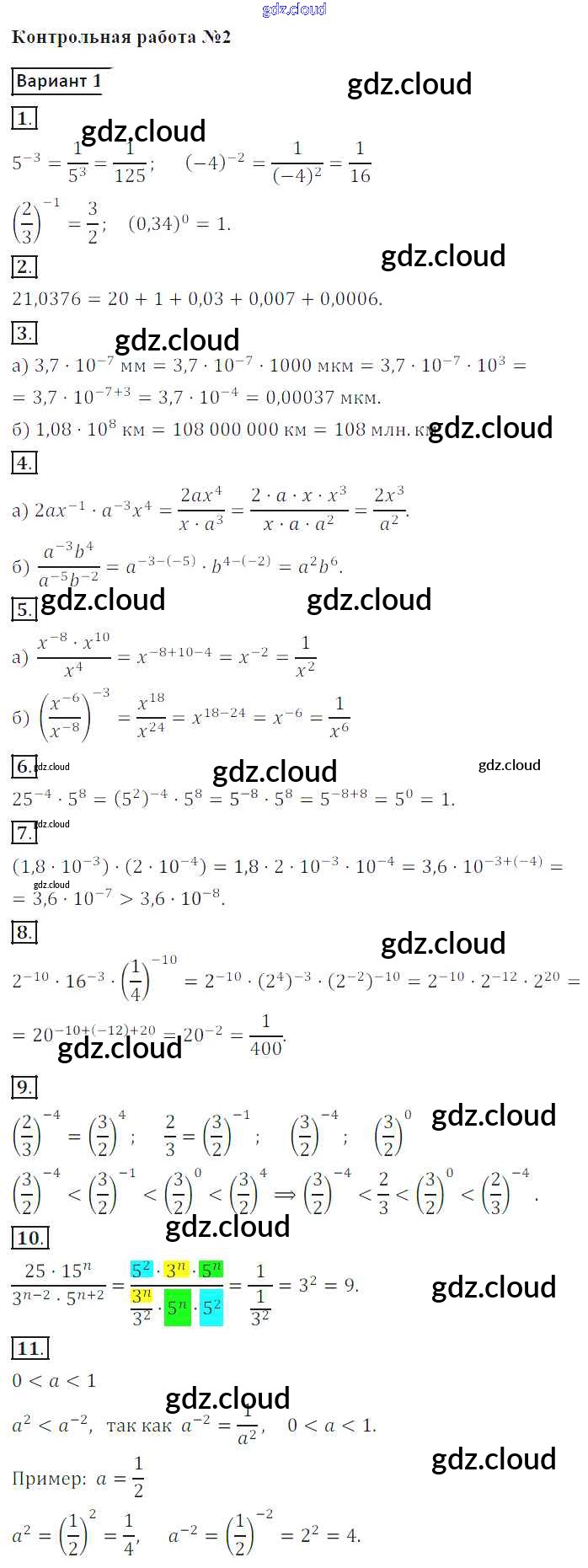 Ответы к Контрольной работе 2. Варианты по Алгебре 8 класс Контрольные работы Кузнецова Просвещение