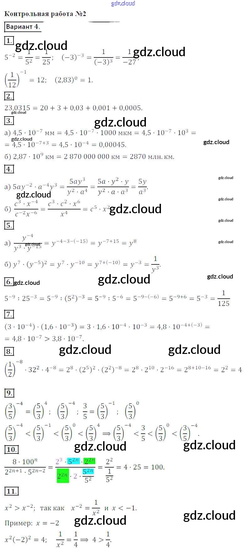Ответы к Контрольной работе 2. Варианты по Алгебре 8 класс Контрольные работы Кузнецова Просвещение