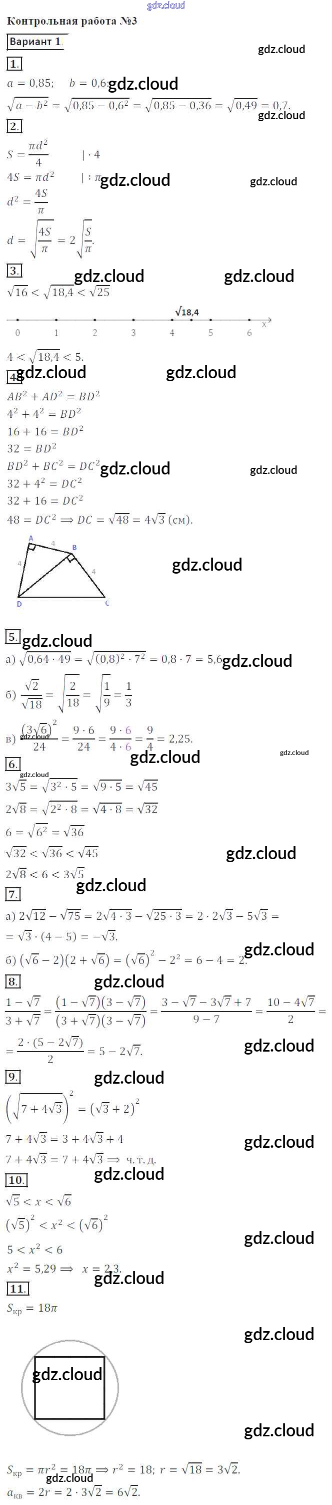Ответы к Контрольной работе 3. Варианты по Алгебре 8 класс Контрольные работы Кузнецова Просвещение