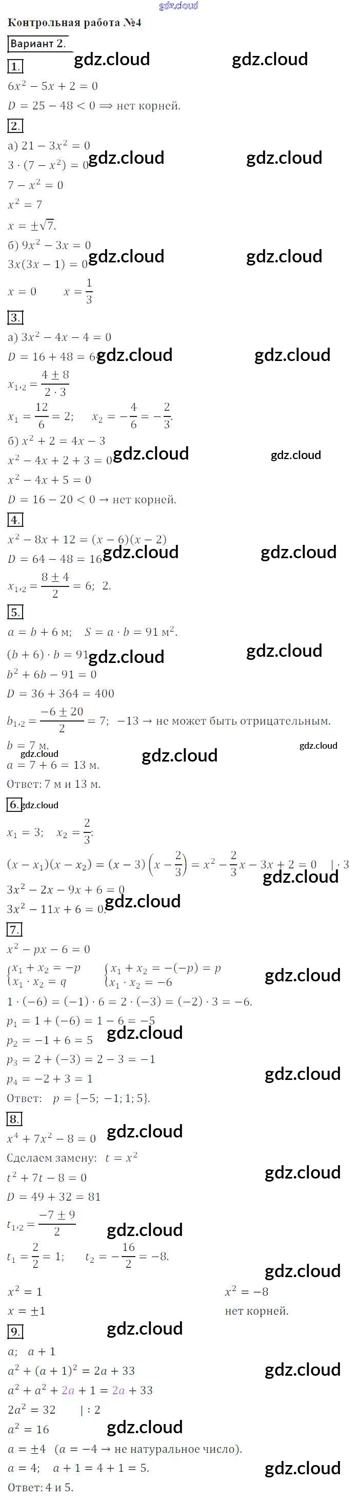 Ответы к Контрольной работе 4. Варианты по Алгебре 8 класс Контрольные работы Кузнецова Просвещение