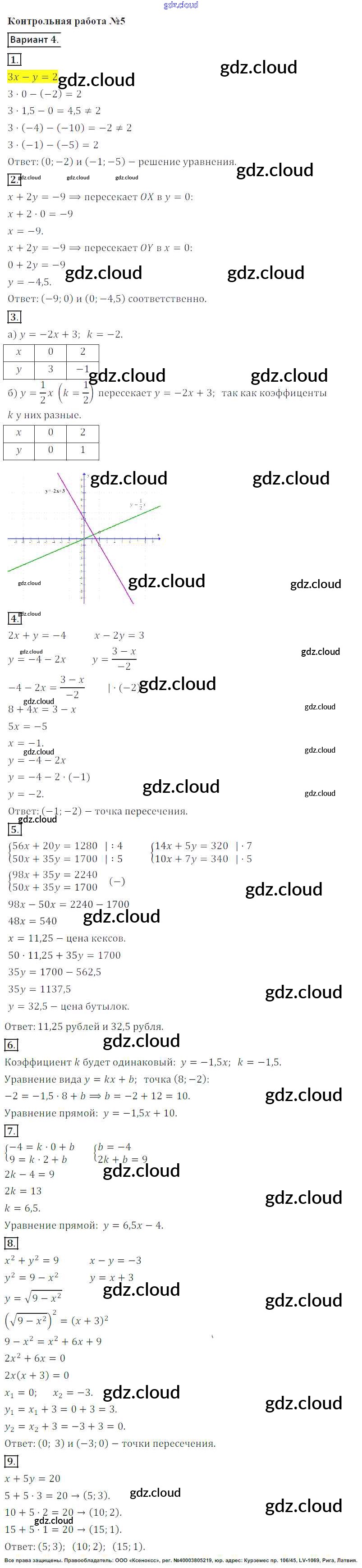 Ответы к Контрольной работе 5. Варианты по Алгебре 8 класс Контрольные работы Кузнецова Просвещение