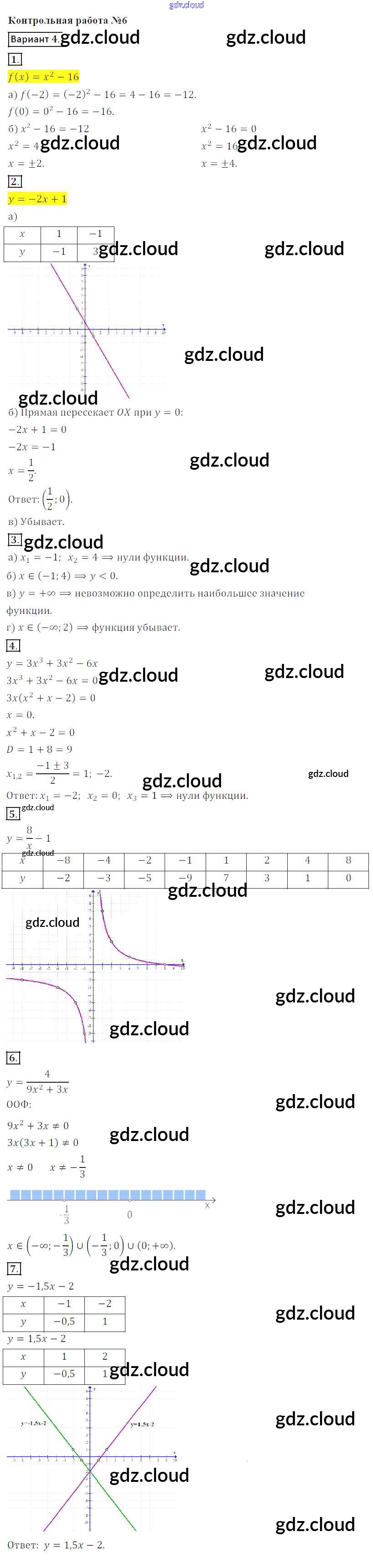 Ответы к Контрольной работе 6. Варианты по Алгебре 8 класс Контрольные работы Кузнецова Просвещение