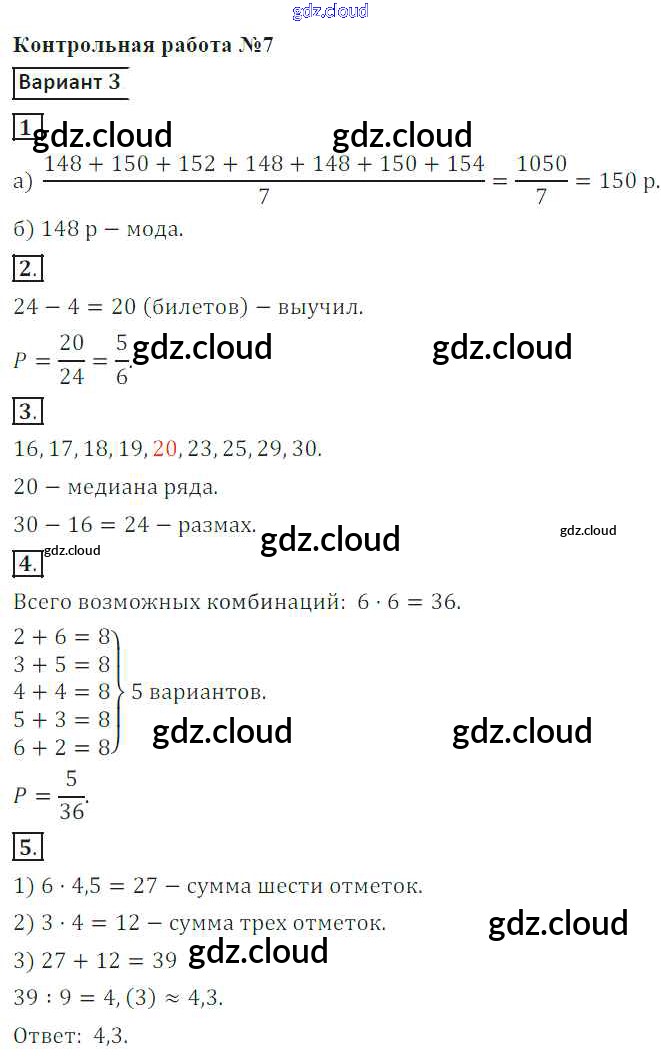 Ответы к Контрольной работе 7. Варианты по Алгебре 8 класс Контрольные работы Кузнецова Просвещение