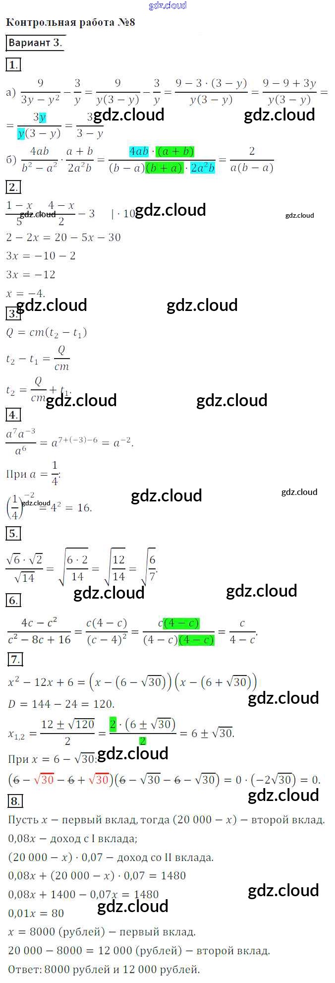 Ответ на задание 3 Контрольные работы Алгебра за 8 (восьмой) класс Кузнецова, Минаева, Рослова, Суворова 2016