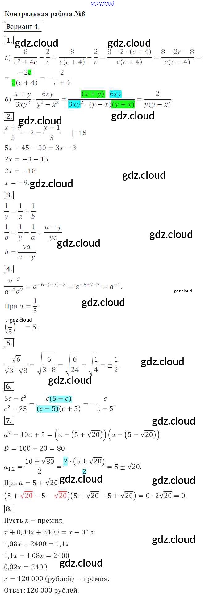 Ответ на задание 4 Контрольные работы Алгебра за 8 (восьмой) класс Кузнецова, Минаева, Рослова, Суворова 2016