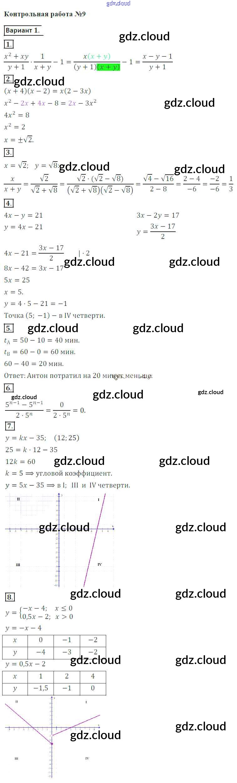 Ответы к Контрольной работе 9. Варианты по Алгебре 8 класс Контрольные работы Кузнецова Просвещение