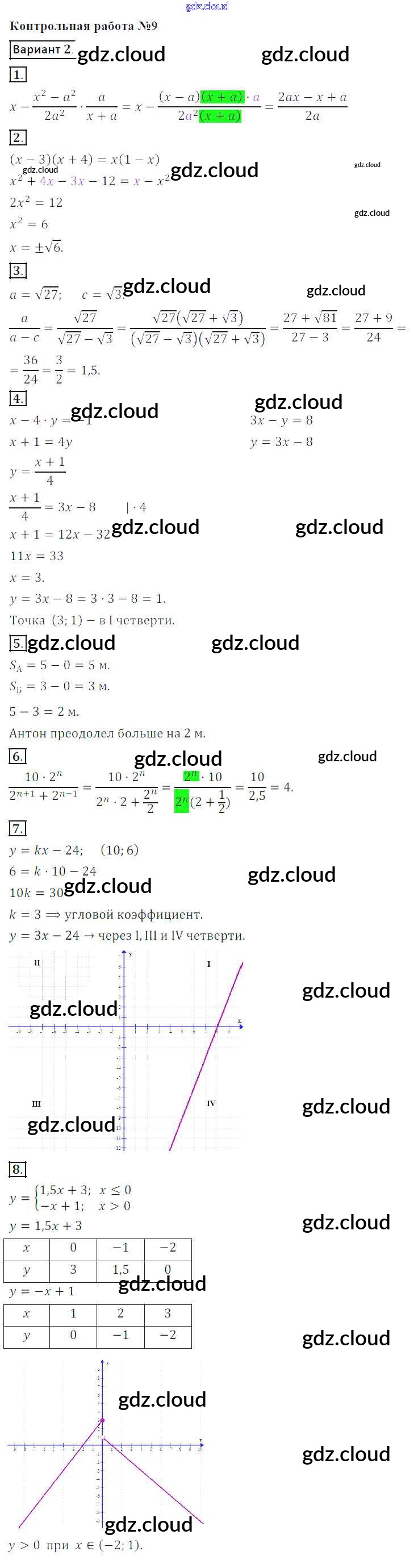Ответы к Контрольной работе 9. Варианты по Алгебре 8 класс Контрольные работы Кузнецова Просвещение