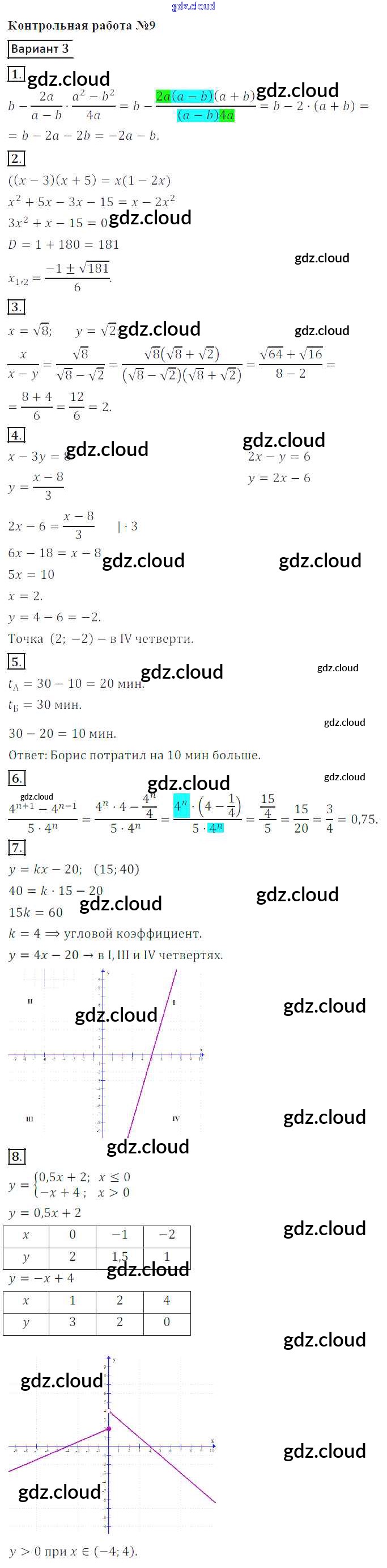 Ответ на задание 3 Контрольные работы Алгебра за 8 (восьмой) класс Кузнецова, Минаева, Рослова, Суворова 2016