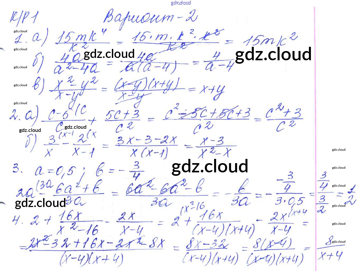Ответы к КР-1. Сумма и разность дробей. Варианты по Алгебре 8 класс Контрольные работы Дудницын УМК Экзамен