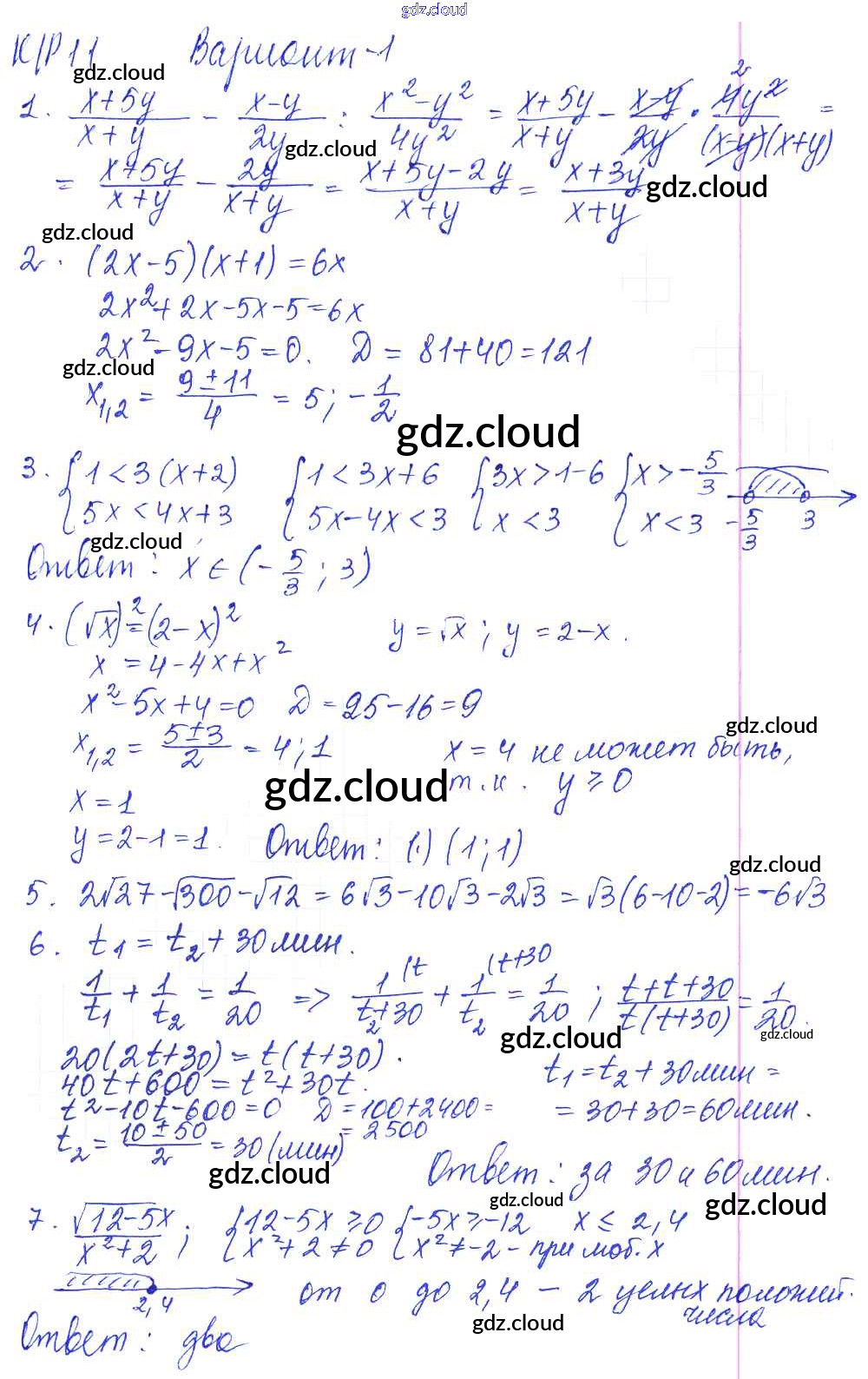 Ответ на задание 1 Контрольные работы Алгебра за 8 (восьмой) класс Дудницын, Кронгауз УМК 2010