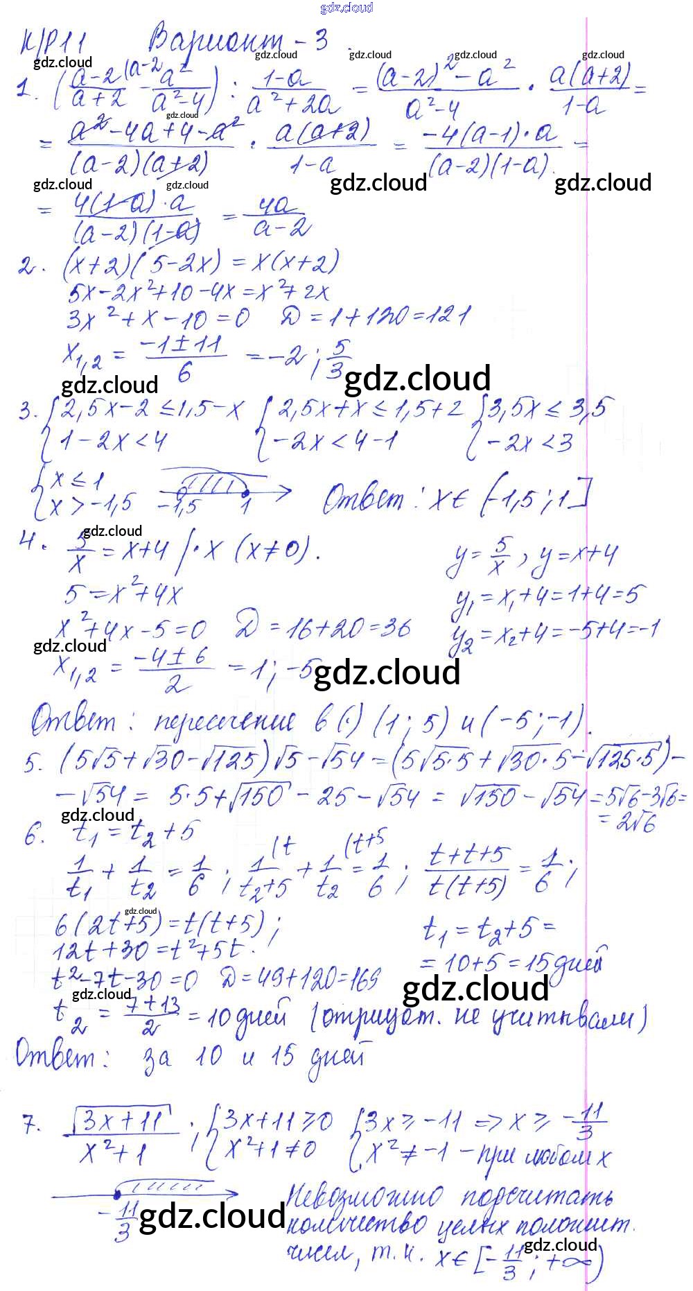 Ответ на задание 3 Контрольные работы Алгебра за 8 (восьмой) класс Дудницын, Кронгауз УМК 2010