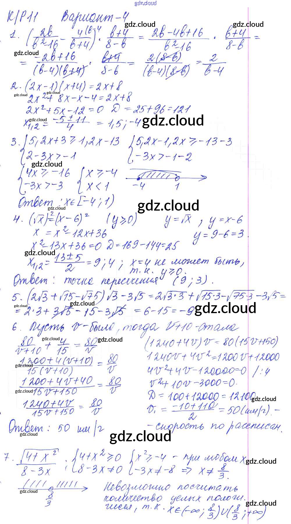 Ответ на задание 4 Контрольные работы Алгебра за 8 (восьмой) класс Дудницын, Кронгауз УМК 2010
