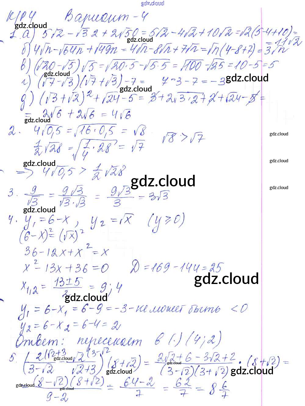 Ответы к КР-4. Применение свойств арифметического квадратного корня. Варианты по Алгебре 8 класс Контрольные работы Дудницын УМК Экзамен