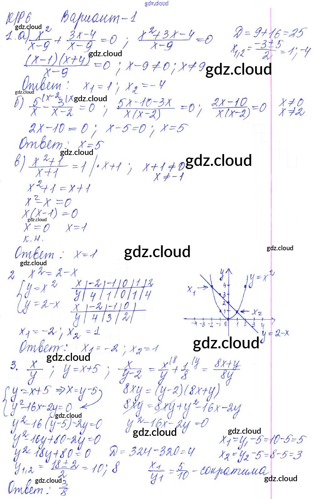 Ответы к КР-6. Дробные рациональные уравнения. Варианты по Алгебре 8 класс Контрольные работы Дудницын УМК Экзамен