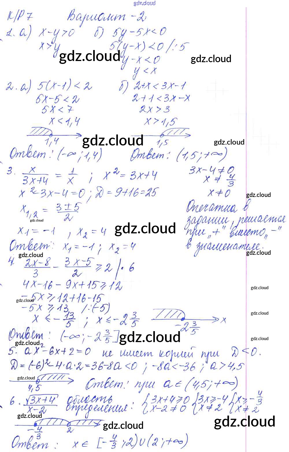 Ответы к КР-7. Неравенства с одной переменной. Варианты по Алгебре 8 класс Контрольные работы Дудницын УМК Экзамен