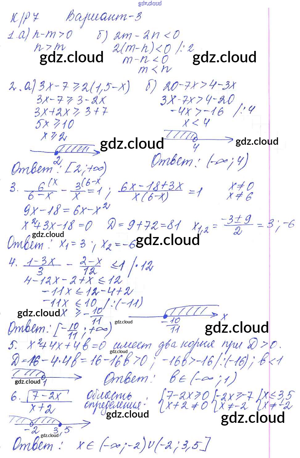 Ответы к КР-7. Неравенства с одной переменной. Варианты по Алгебре 8 класс Контрольные работы Дудницын УМК Экзамен