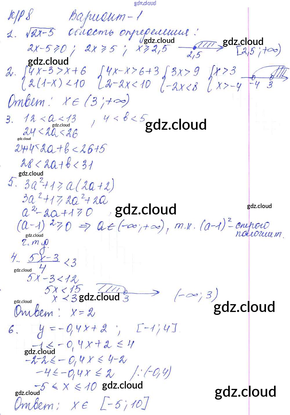 Ответы к КР-8. Системы неравенств с одной переменной. Варианты по Алгебре 8 класс Контрольные работы Дудницын УМК Экзамен