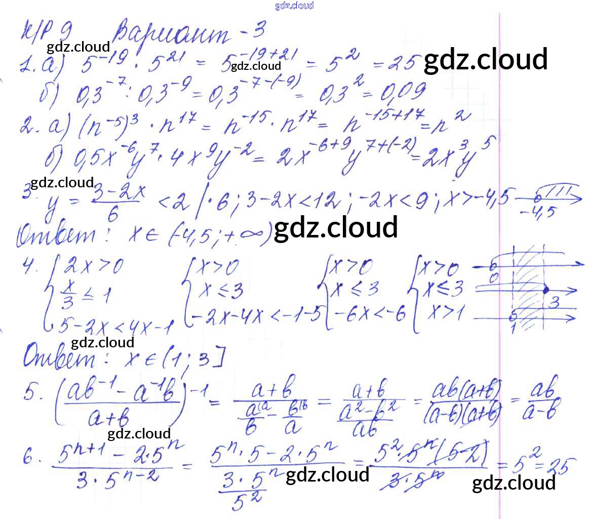 Ответы к КР-9. Степень с целым показателем. Варианты по Алгебре 8 класс Контрольные работы Дудницын УМК Экзамен