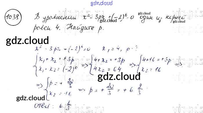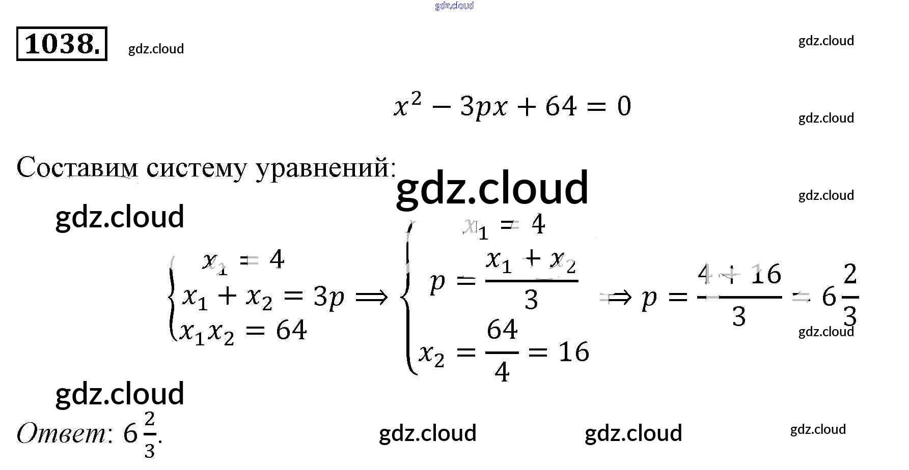 Ответ на задание 1038 Учебник Алгебра за 8 (восьмой) класс Макарычев, Миндюк, Нешков, Суворова 2016