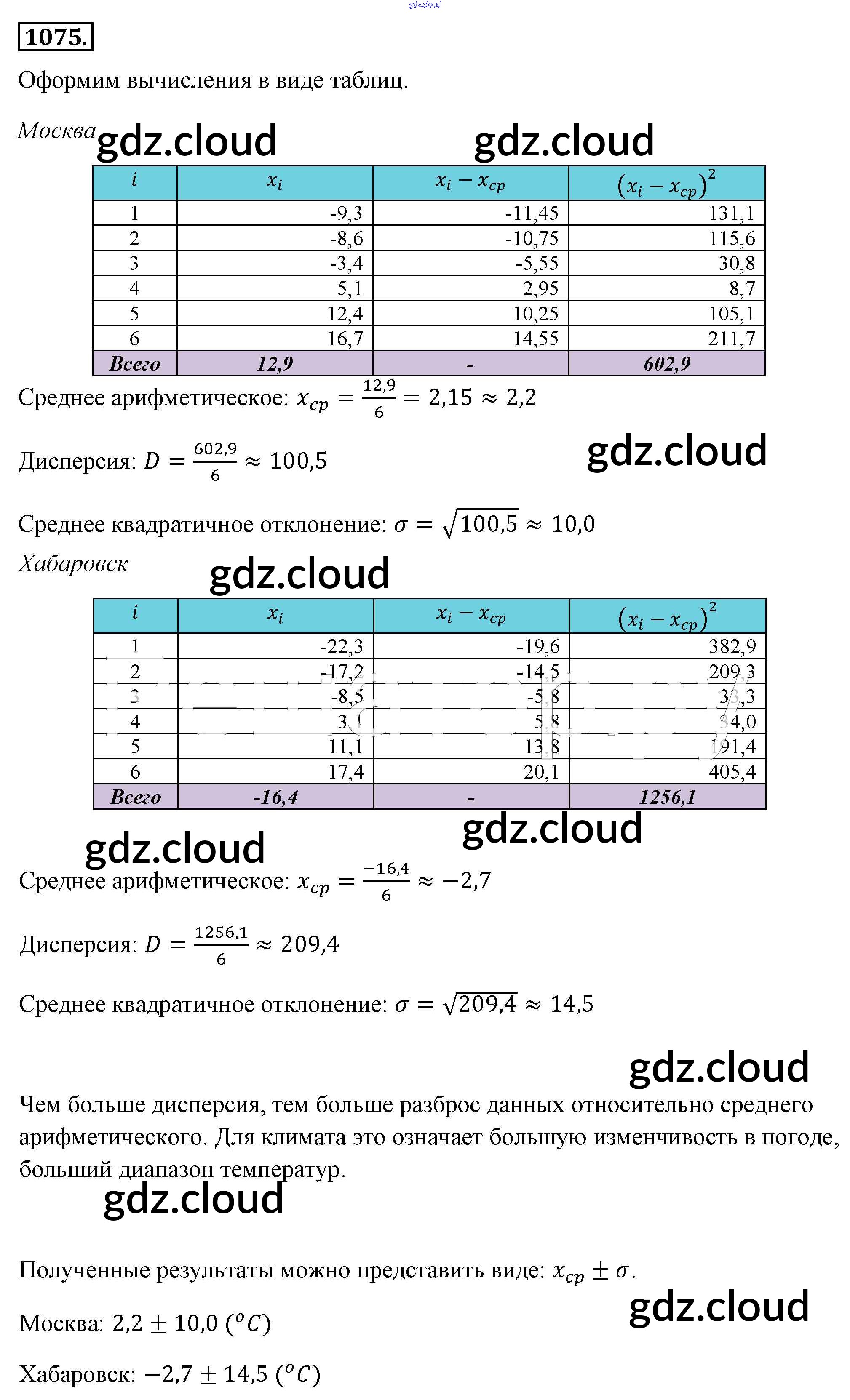 Ответ на задание 1075 Учебник Алгебра за 8 (восьмой) класс Макарычев, Миндюк, Нешков, Суворова 2016