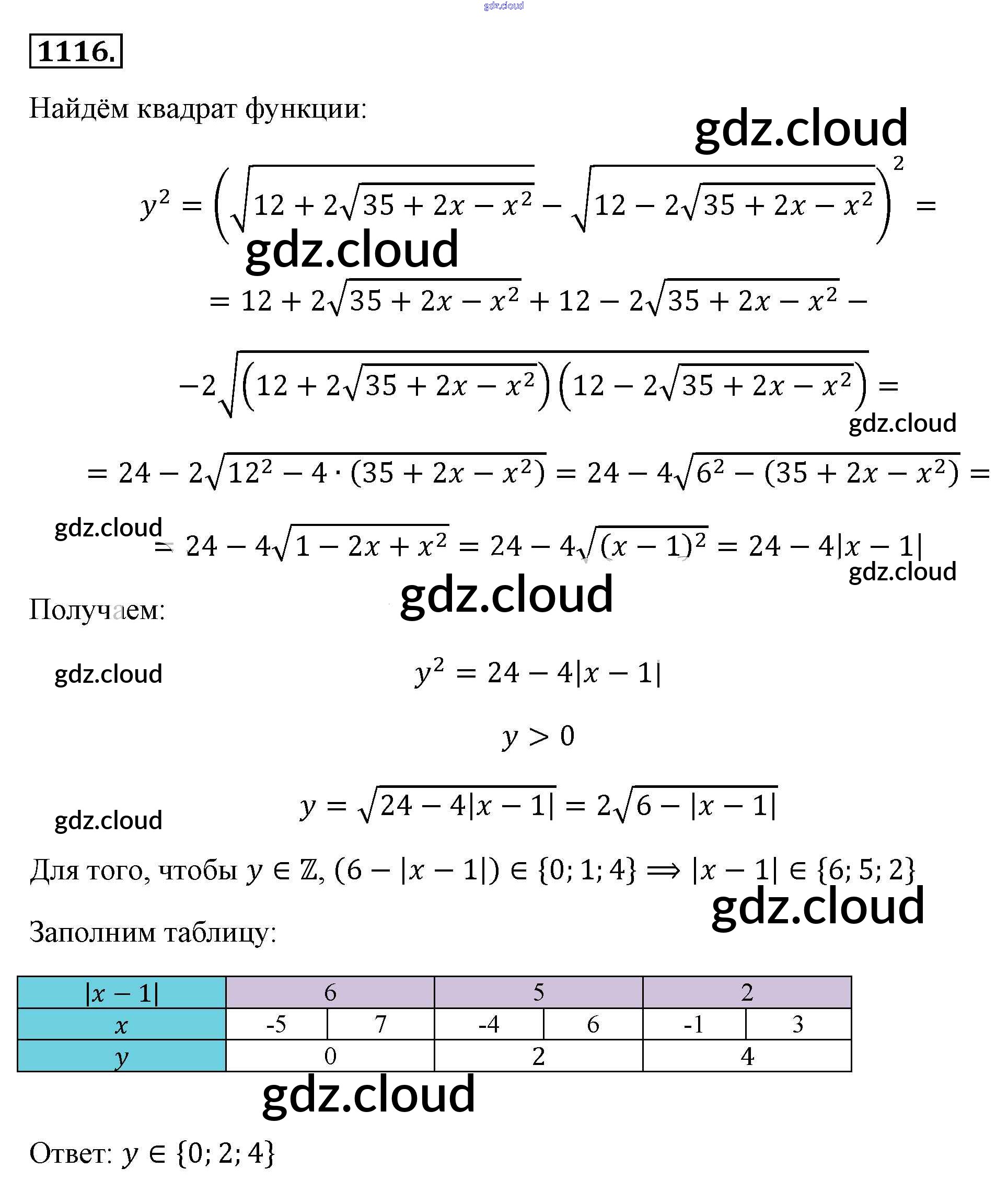Ответ на задание 1116 Учебник Алгебра за 8 (восьмой) класс Макарычев, Миндюк, Нешков, Суворова 2016
