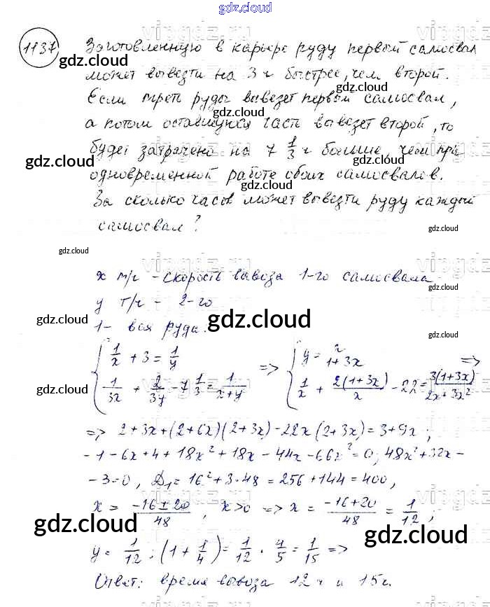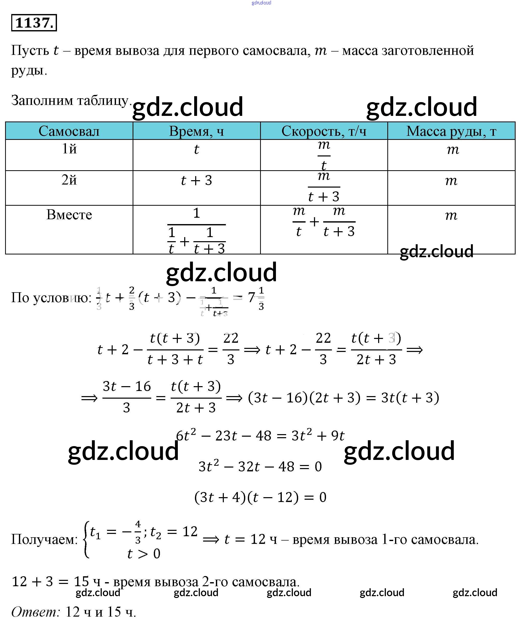 Ответ на задание 1137 Учебник Алгебра за 8 (восьмой) класс Макарычев, Миндюк, Нешков, Суворова 2016