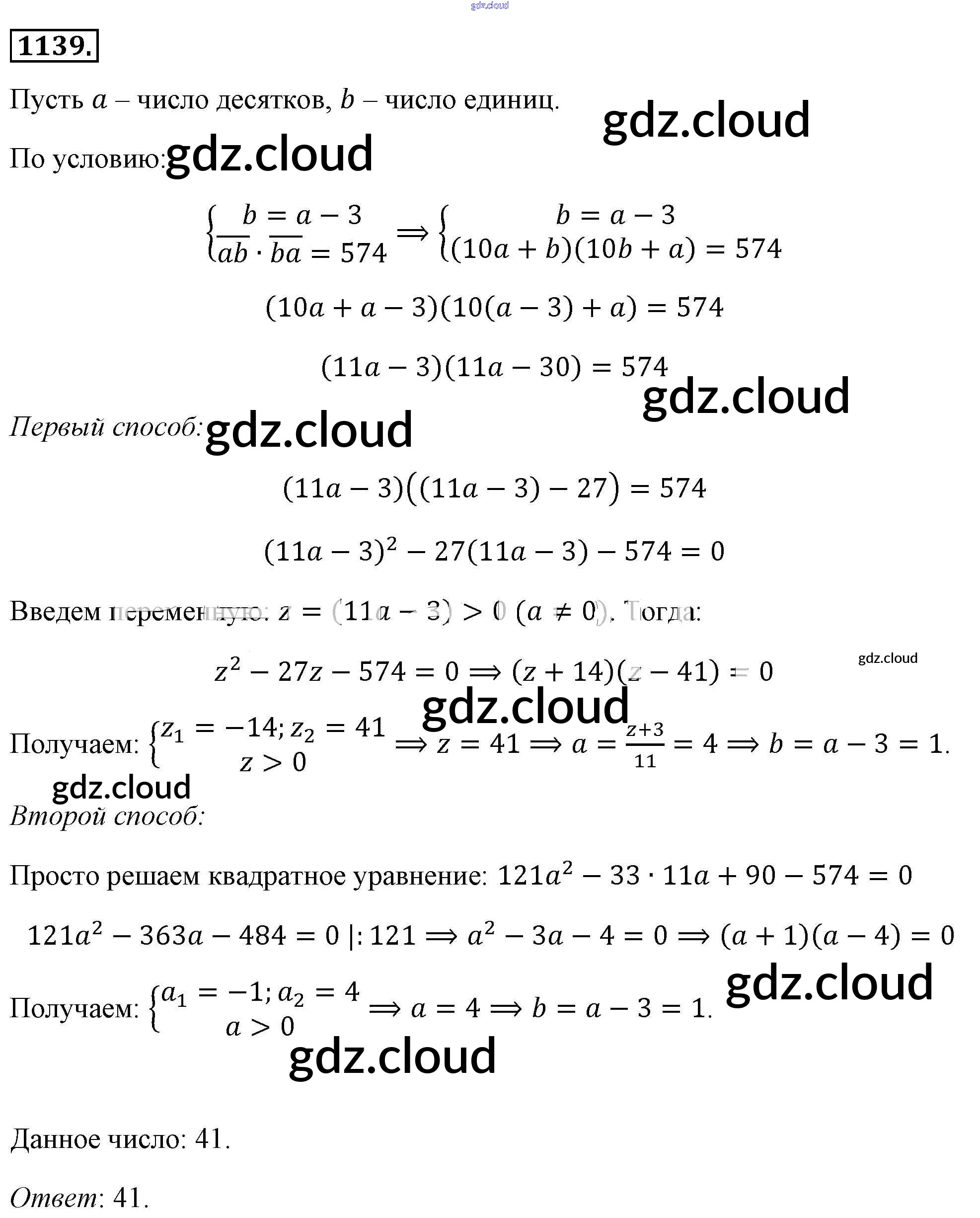 Ответ на задание 1139 Учебник Алгебра за 8 (восьмой) класс Макарычев, Миндюк, Нешков, Суворова 2016