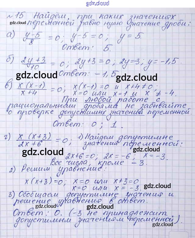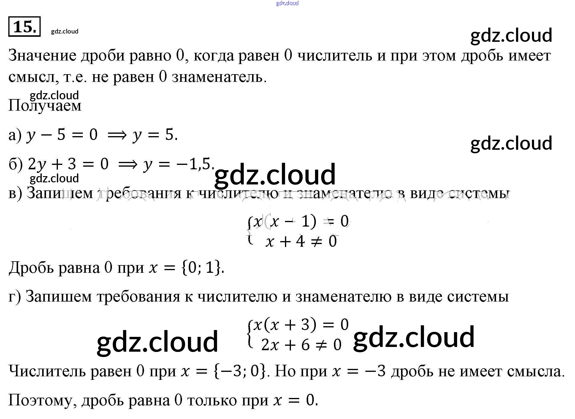 Ответ на задание 15 Учебник Алгебра за 8 (восьмой) класс Макарычев, Миндюк, Нешков, Суворова 2016